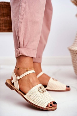 Beżowe Damskie Płaskie Sandałki Lu Boo Plecione Felicia