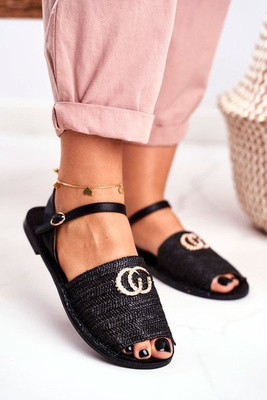 Czarne Damskie Płaskie Sandałki Lu Boo Plecione Felicia