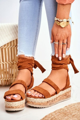 Sandały Damskie Na Platformie Wiązane Camel La Favorite