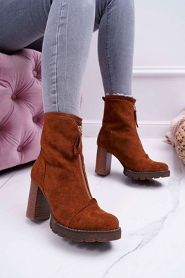 Botki Damskie Na Obcasie Skóra Zamsz Cappuccino Nicole 2433