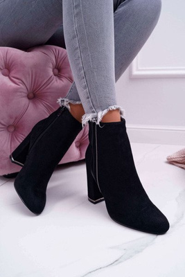 Botki Damskie na Słupku Zamszowe Czarne Shanto