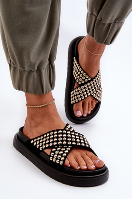 Klapki Damskie Z Ozdobą Złote Ollavia