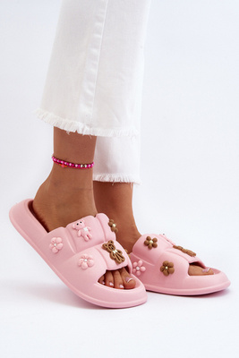 Damskie Klapki Z Kokardą i Misiem Białe Katterina