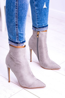 Lu Boo Szare Zamszowe Botki na Szpilce Veneci