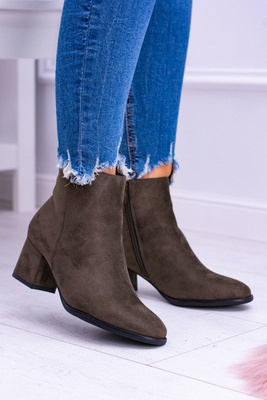 Damskie Botki Na Słupku Zamsz Khaki Ferimate