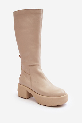Kozaki Damskie Na Platformie Z Suwakiem GOE MM2N4067 Jasnobeżowe