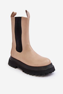Botki Damskie Masywna Platforma Beżowe Beatrice