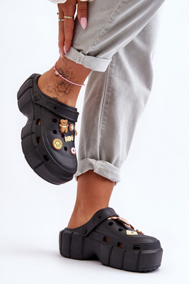 Damskie Piankowe Klapki Kroksy Z Ozdobami Czarne Marlett
