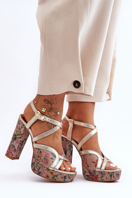 Skórzane Sandały Na Obcasie Maciejka 06084-25 Złote