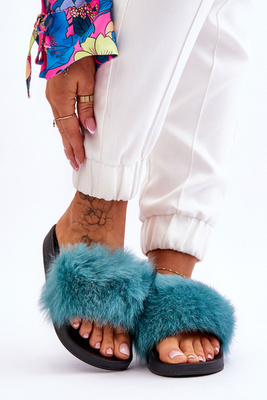 Damskie Gumowe Klapki Z Futerkiem Turkusowe Lucrece