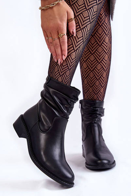 Damskie Marszczone Botki Na Płaskim Obcasie Czarne Sersa