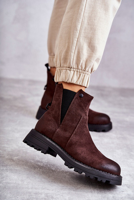 Zamszowe Ocieplane Botki Workery Na Płaskim Obcasie Brązowe Salome