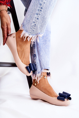 Damskie Gumowe Baleriny Z Kokardą Beżowe Florret