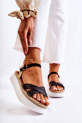 Damskie Plecione Sandały Na Platformie Czarne Selea