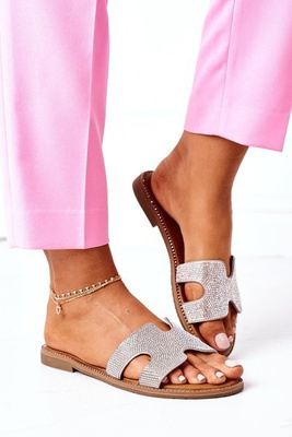 Skórzane Klapki Z Cyrkoniami Srebrne Modena