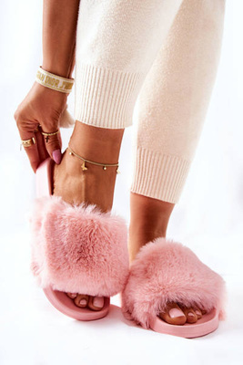Gumowe Klapki Z Futerkiem Jasnoróżowe Sensitive