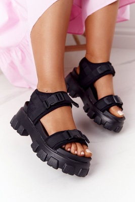 Sandały Na Koturnie Z Plecionką Czarne Lobos