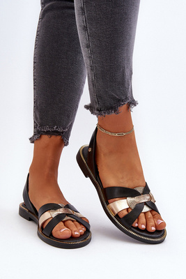 Zazoo 40182 Skórzane Sandały Damskie Czarne