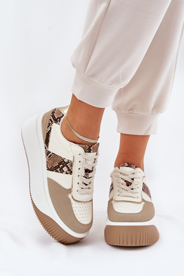 Buty Sportowe Damskie Na Platformie Zwierzęcy Wzór Beżowe Davinara
