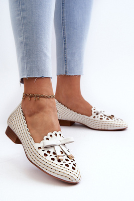 Ażurowe Baleriny Damskie Z Kokardką Białe Nestavia
