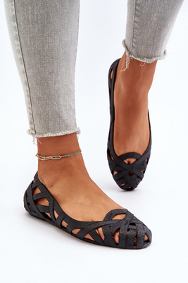 Skórzane Baleriny Damskie Na Płaskim Obcasie Laura Messi 2774 Czarne