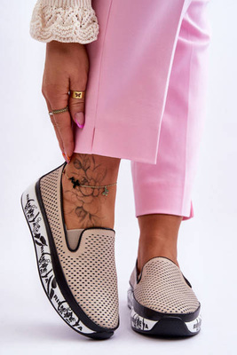 Damskie Ażurowe Skórzane Tenisówki Slip-On Beżowe Sorito