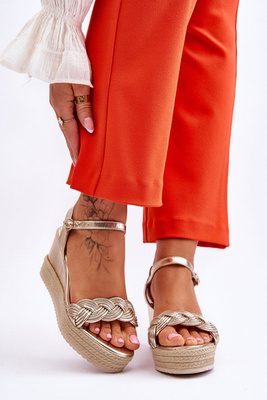 Klasyczne Skórzane Sandały Na Koturnie Złote Denisse