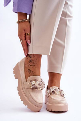Damskie Mokasyny Na Platformie Z Ozdobami Beżowe Brenda