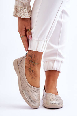 Skórzane Ażurowe Baleriny Vinceza 95323 Beżowe