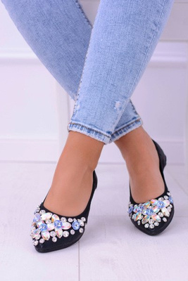 Lu Boo Czarne Balerinki na Gumce Kamienie Even