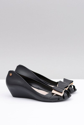 Lu Boo Czarne Gumowe Baleriny Na Koturnie Kokarda Lea