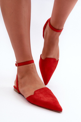 Wiązane Baleriny Eko Zamszowe Z Noskami W Szpic Czerwone Ellesara