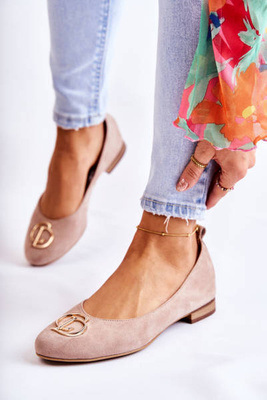 Zamszowe Baleriny Z Łańcuchem Lewski Shoes 3125 Beżowe