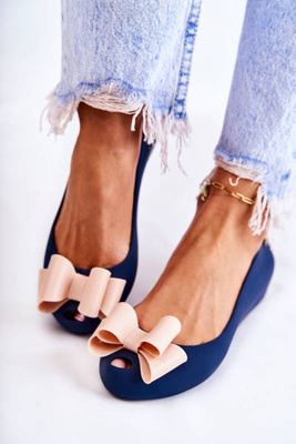 Damskie Gumowe Baleriny Z Kokardą Granatowe Florret