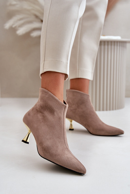 Botki Damskie Na Słupku Zapinane Na Zamek Eko Zamszowe Ciemnobeżowe Bonucci