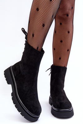 Zamszowe Botki Workery Damskie Czarne Dearia