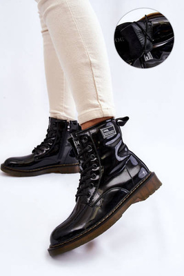 Damskie Botki Workery Sznurowane Czarne Marlissa