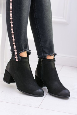 Damskie Czarne Botki Na Słupku Zamsz Ferimate