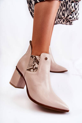Skórzane Botki Na Słupku Maciejka 05507-37 Jasnobeżowe