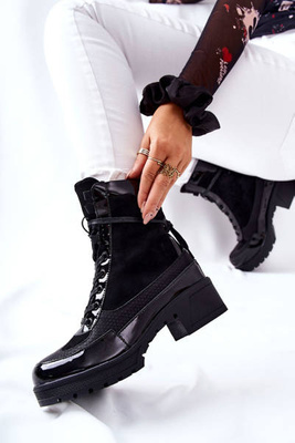 Botki Wiązane Na Słupku Ocieplane Czarne Nerynis