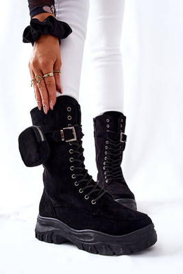 Zamszowe Botki Na Koturnie Czarne Lunelle