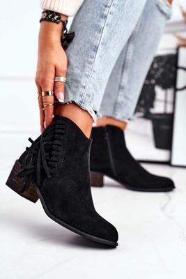 Botki Damskie Na Słupku Eko-Zamsz Czarne Juliet