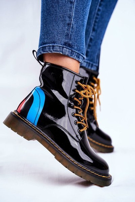 Damskie Botki Trapery Glany Goe Skórzane Czarne GG2N3056
