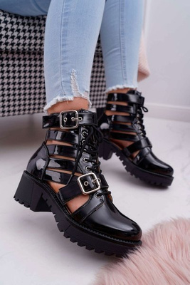 Botki Damskie Płaski Obcas Glany Lakierowane Czarne Sergio Leone TR726
