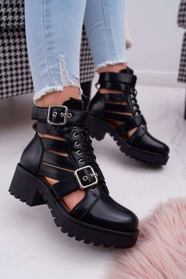 Damskie Botki Workery Z Dżetami Czarne Gether