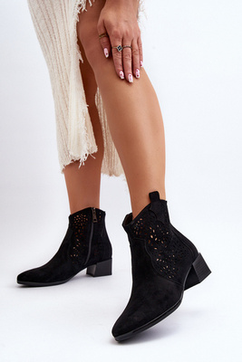 Zamszowe Botki Damskie Na Słupku Czarne Selela