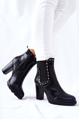Botki Damskie Na Słupku Ocieplane Czarne Dunaff