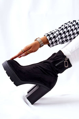 Zamszowe Botki Na Obcasie Czarne Elisea