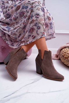 Botki Damskie Na Obcasie Wiosenne Skóra Zamsz Ciemne Cappuccino Nicole 2430