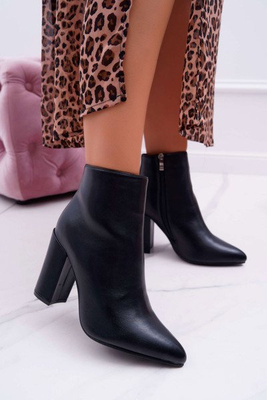 Botki Damskie Na Słupku Za Kostkę Ocieplane Czarne Temma